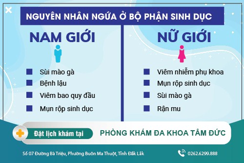 Để điều trị ngứa bộ phận sinh dục an toàn, hiệu quả người bệnh có thể đến Phòng Khám Đa khoa Tâm Đức (Số 07 Đường Bà Triệu, Phường Buôn Ma Thuột, Tỉnh Đắk Lắk) để được thăm khám cụ thể. Tùy vào nguyên nhân gây ngứa bộ phận sinh dục mà bác sĩ sẽ áp dụng các phương pháp phù hợp.
