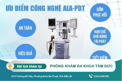 ✤ Điều trị bằng ALA – PDT: Đây được xem là giải pháp hỗ trợ điều trị mụn cóc sinh dục tiên tiến, tốt hiện nay. Công nghệ ALA-PDT hoạt động bằng cách sử dụng tác động qua lại của ánh sáng, chất cảm quang, oxy, giúp hỗ trợ điều trị chứng tăng sinh bất thường các mô da và các loại u xơ trên bề mặt cơ thể, giúp ức chế virus HPV dù ở mọc ở bất cứ vị trí nào trên cơ thể.