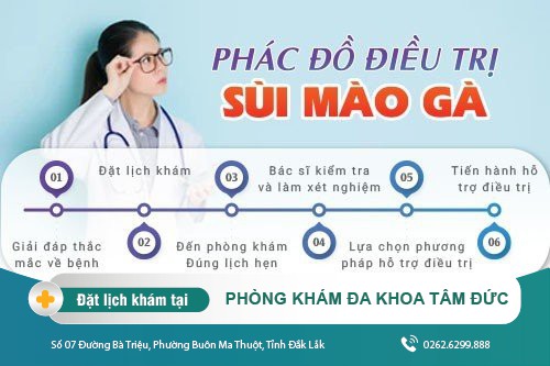 – Hiện nay, các bác sĩ tại Phòng Khám Đa khoa Tâm Đức (Số 07 Đường Bà Triệu, Phường Buôn Ma Thuột, Tỉnh Đắk Lắk) đang áp dụng phương pháp ALA PDT trong điều trị sùi mào gà, mang lại hiệu quả đạt tới 99%.