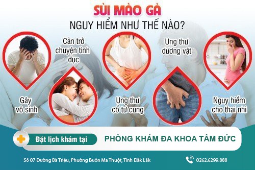 ✔ Tại Phòng Khám Đa khoa Tâm Đức (Số 07 Đường Bà Triệu, Phường Buôn Ma Thuột, Tỉnh Đắk Lắk), mọi quá trình hỗ trợ khám chữa tái nhiễm căn bệnh sùi mào gà đều do đội ngũ bác sĩ chuyên khoa ưu tú và dày dặn kinh nghiệm trực tiếp thực an toàn, dựa trên nền tảng hệ thống máy móc y khoa hiện đại, được nhập khẩu từ Châu Âu nên sẽ mang đến sự chính xác, hiệu quả cao.
