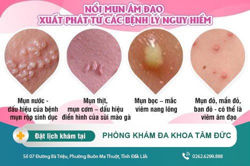 Tại Phòng Khám Đa khoa Tâm Đức (Số 07 Đường Bà Triệu, Phường Buôn Ma Thuột, Tỉnh Đắk Lắk) việc điều trị mụn vùng kín đã là vấn đề không còn quá khó khăn. Phòng khám là trung tâm điều trị bệnh xã hội uy tín, áp dụng các phương pháp tiên tiến trong điều trị mụn vùng kín, hiệu quả cao, chưa ghi nhận trường hợp tái phát lại: