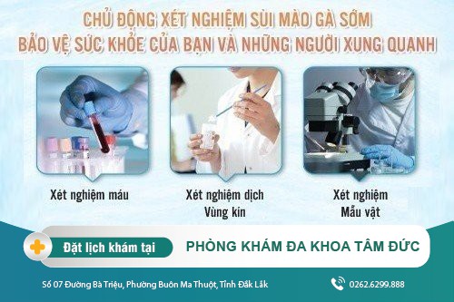 Phòng Khám Đa khoa Tâm Đức (Số 07 Đường Bà Triệu, Phường Buôn Ma Thuột, Tỉnh Đắk Lắk) là một trong số ít địa chỉ xét nghiệm sùi mào gà uy tín, chất lượng, thăm khám và điều trị các bệnh truyền nhiễm, bệnh lây truyền qua đường tình dục như HIV, lậu, sùi mào gà, giang mai, mụn rộp sinh dục.